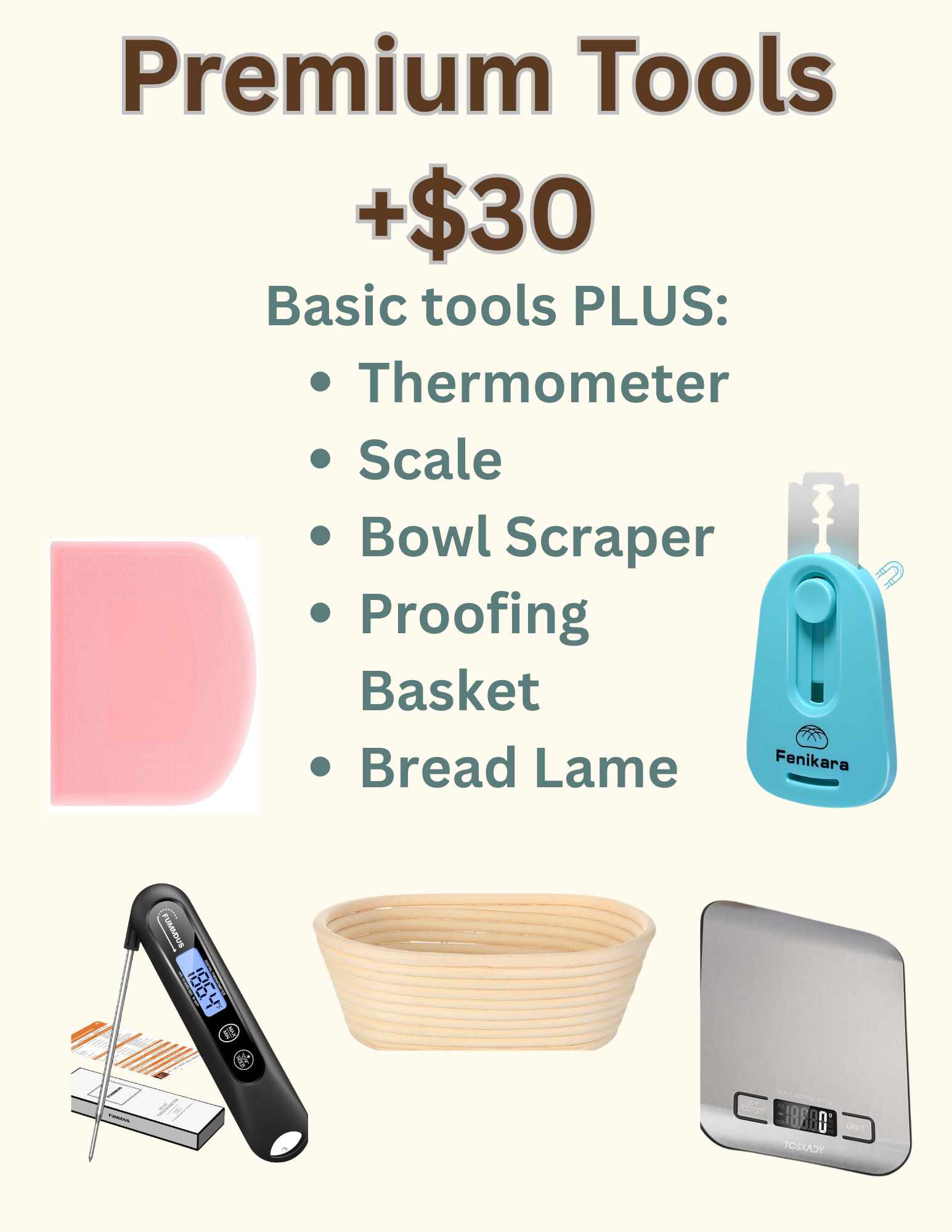 Add on a Premium Tools Package to leave with the essentials for baking your first loaf without heading to the store!